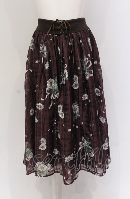 Secret Honey / シャドーチェック花柄ミディスカート ワイン O-25-04-30-2022-CA-SK-IG-OS