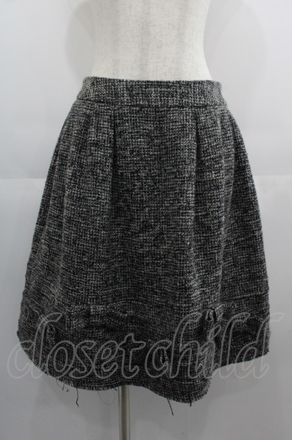 Jane Marple / 裾リボンデザインツイードスカート 黒X白 I-25-05-01-115-JM-SK-HD-ZI
