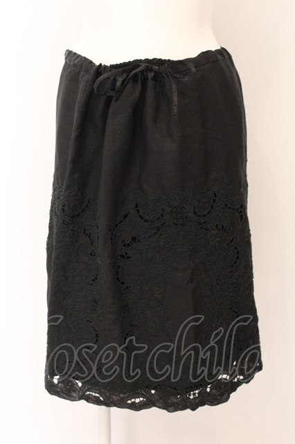 Jane Marple Dans Le Salon / モチーフレース使いスカート M クロ O-25-02-23-058-JM-SK-OW-ZT337