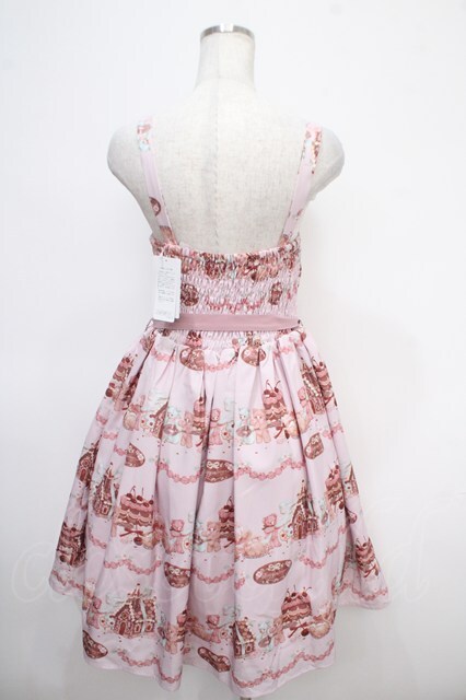 axes femme kawaii / お菓子の家柄ジャンスカ M ピンク Y-25-05-05-105-AX-OP-SZ-ZY