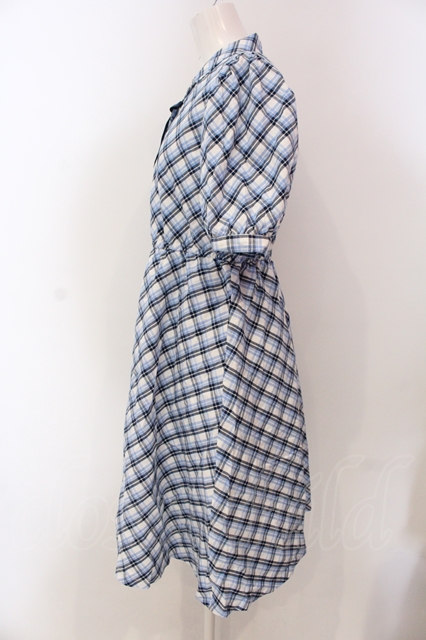 F i.n.t / リボンタイ付き開衿チェックワンピース F ブルー O-25-05-10-008-CA-OP-OW-OS