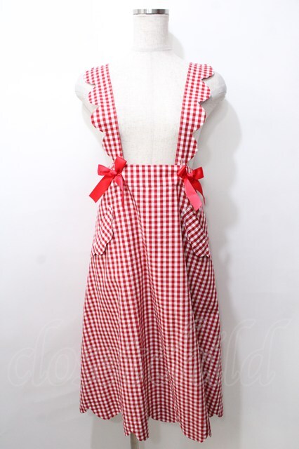 Nile Perch / ギンガム吊りジャンパースカート 赤 Y-25-09-11-017-LO-SK-SZ-ZT107