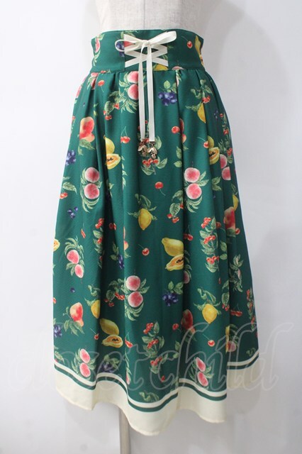 axes femme / ミックスフルーツ柄スカート M グリーン Y-25-05-10-177-AX-SK-SZ-ZT503