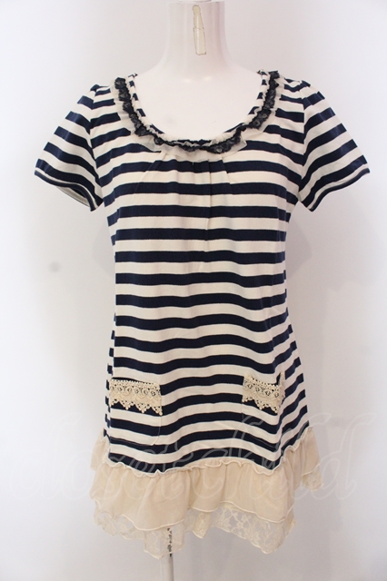 axes femme / バックティアードボーダーチュニック M アイボリー×ネイビー O-25-05-12-051-AX-TO-IG-OS