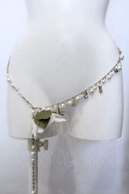 INGEBORG / シグネチャーカメリアコサージュチェーンベルト ゴールド×シロ O-25-05-14-037-LO-ZA-IG-OS