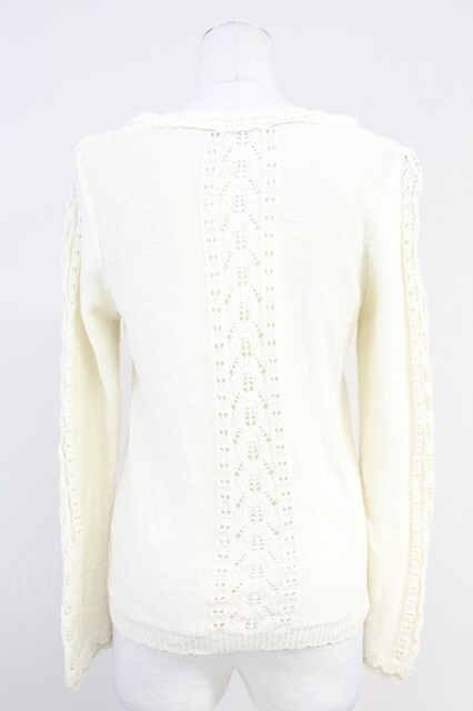 axes femme / 透かし編み柄カーディガン アイボリー T-25-05-16-019-AX-TO-SA-ZI