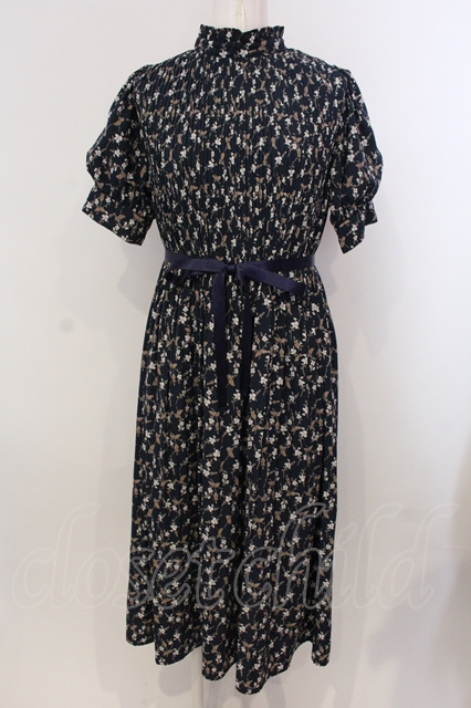 Maison de FLEUR Petite Robe / 花柄プリーツドレス ネイビー O-25-05-15-065-EL-OP-OW-ZT029