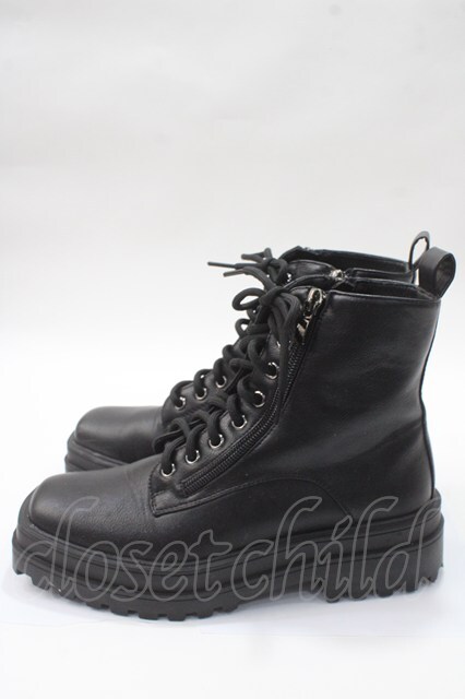 あしながおじさん / モードカジュアルなスクエアコンバットブーツ S 黒 Y-25-05-16-091-PU-SH-SZ-ZY