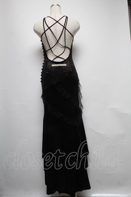 alice auaa / 後ろ下がり別珍ノースリーブワンピース 黒 S-25-05-16-042-AA-OP-AS-ZS