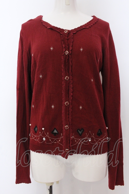 axes femme / トランプ柄パネル刺繍カーディガン M ワイン O-25-05-18-060-AX-TO-OW-OS