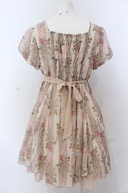 axes femme / タッセルローズストライプワンピース M ピンクベージュ O-25-05-18-083-AX-OP-OW-OS