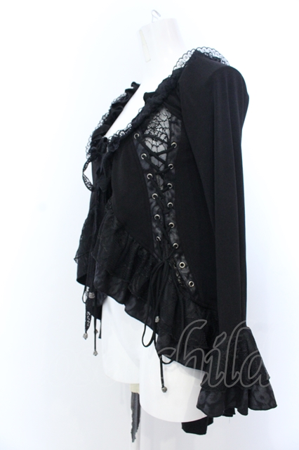 Qutie Frash / レオパードフリルメッシュカーデ ブラック O-25-05-18-025-QU-TO-IG-OS