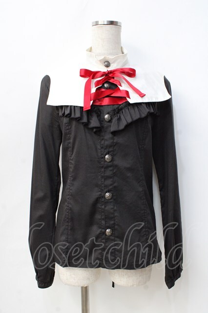 ALGONQUINS / つけ襟付きフリルブラウス M 黒 Y-25-09-13-014-AL-BL-SZ-ZY