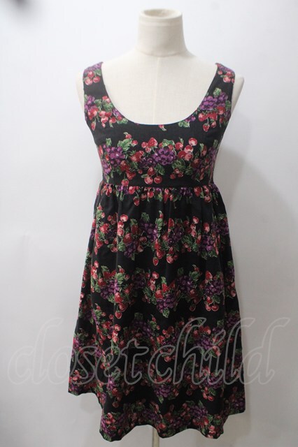 Emily Temple cute / フルーツボーダージャンパースカート 黒 Y-25-05-19-137-ET-OP-SZ-ZY