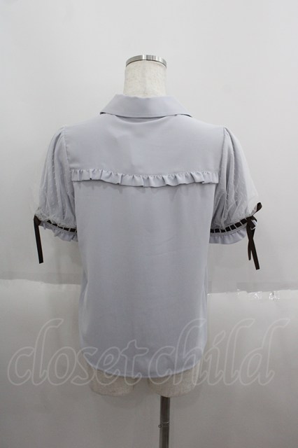 axes femme POETIQUE / ベルベットリボン半袖ブラウス サックスXブラウン I-25-05-19-005-AX-BL-HD-ZI