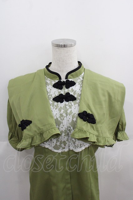 axes femme kawaii / アームカバー付チャイナ釦ブラウス M グリーン I-25-05-19-023-AX-BL-HD-ZI