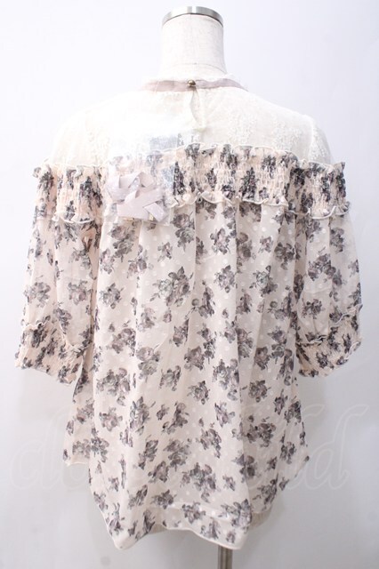 axes femme / 肩レースバラシフォンブラウス M キナリ Y-25-05-22-047-AX-BL-SZ-ZI