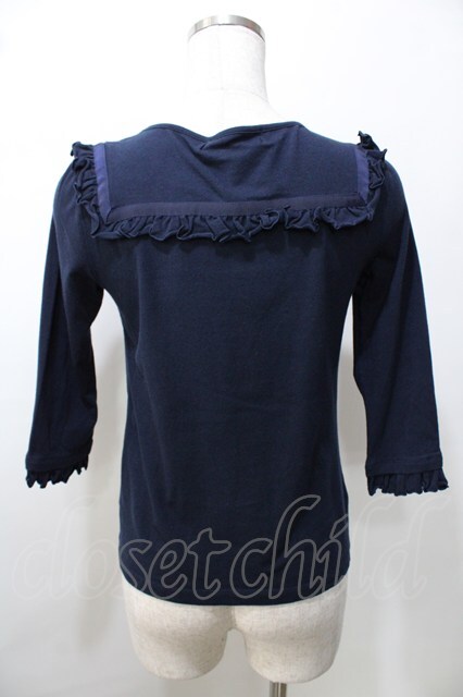 Leur Getter / スクエアフリルカットソー M 紺 Y-25-09-11-002-LU-TO-SZ-ZY