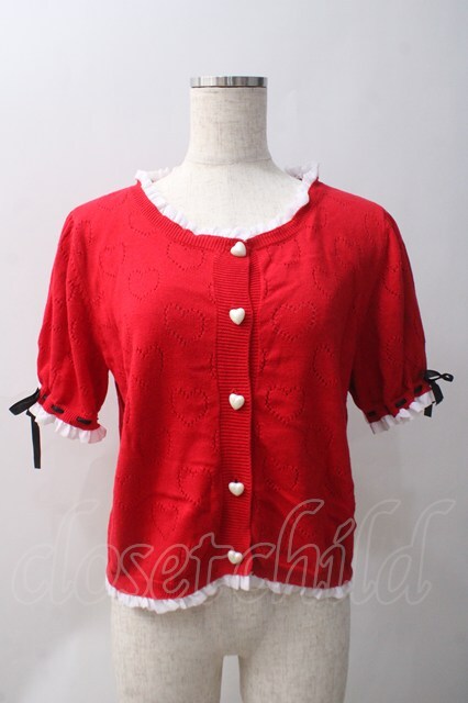 Swankiss / ハート透かしカーディガン 赤 Y-25-05-22-119-CA-TO-SZ-ZY