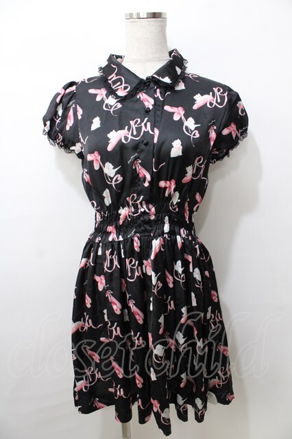 Rose Marie seoir / shirringワンピース ネコバレエ柄黒 Y-25-09-11-031-EL-OP-SZ-ZT002