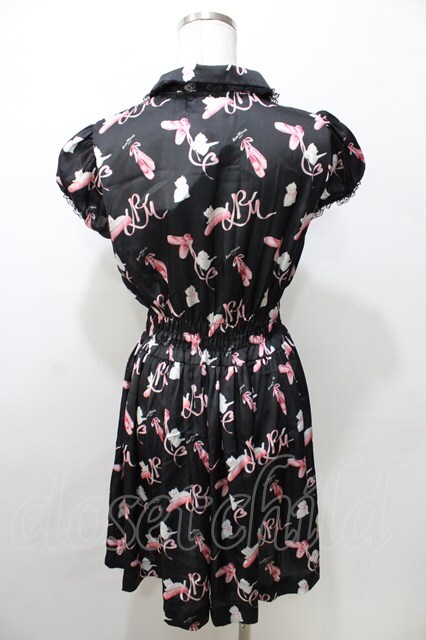 Rose Marie seoir / shirringワンピース ネコバレエ柄黒 Y-25-09-11-031-EL-OP-SZ-ZT002 [戻る]