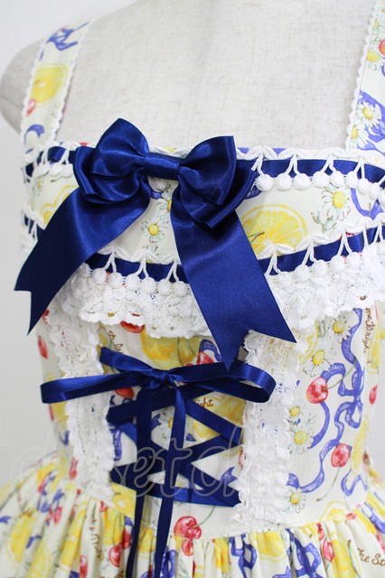 BABY,THE STARS SHINE BRIGHT / Cheerful Lemon柄ジャンパースカートI Free 生成り紺 H-25-06-06-007-BA-OP-NS-ZH