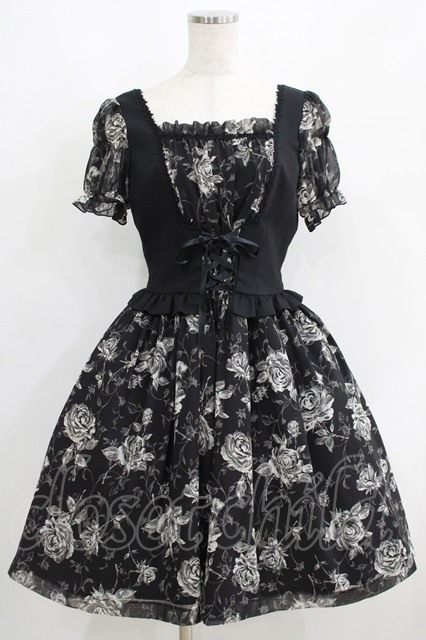 Moi-meme-Moitie / ローズ編み上げワンピース 2 黒 H-25-06-09-1009-MO-OP-KB-ZH