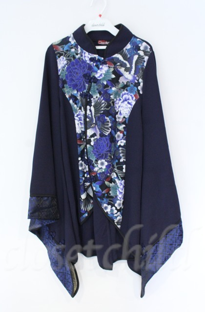 Qutie Frash / チャイナ着物袖チュニック ブルー O-25-12-03-008-QU-TO-IG-ZT079
