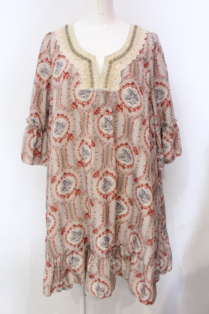 axes femme / ミュルーズ染織美術館 レトロ花柄チュニック M アイボリー O-25-05-29-025-AX-OP-IG-OS