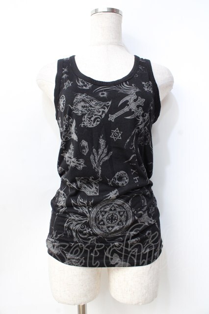 Sixh / 総柄タンク 黒 Y-25-09-13-022-HN-TO-SZ-ZT512