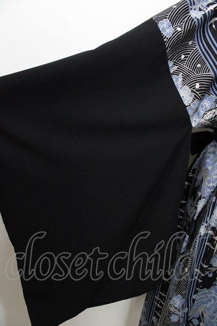 Deorart / 和柄切替着流しガウン 黒×青 Y-25-09-11-053-PU-JA-SZ-ZY