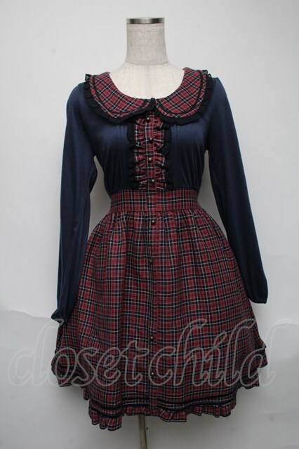 axes femme NOSTALGIE / チェック切替ワンピース 赤x紺 S-25-05-25-047-AX-OP-HR-ZS