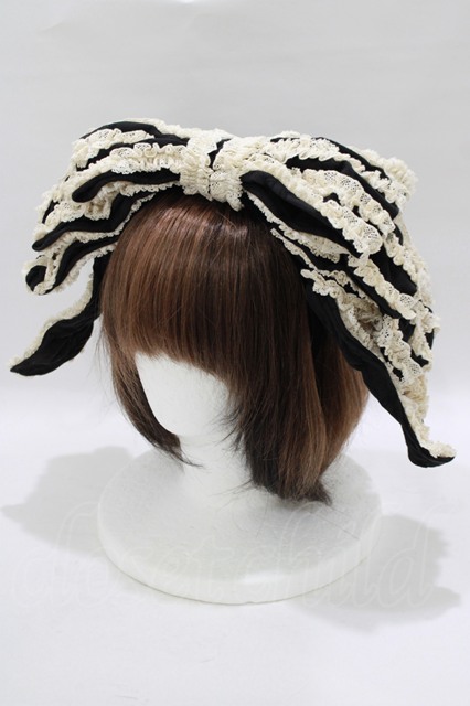 Hoshibako Works / お人形風シャンティクリームリボンカチューシャ ブラック H-25-06-12-1070-LO-AC-NS-ZH