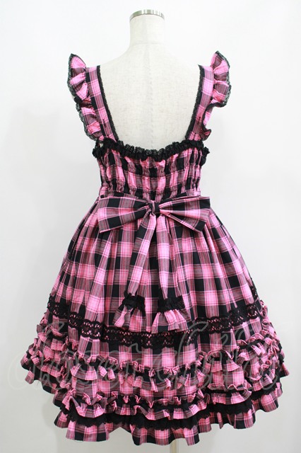 Angelic Pretty / Cotton candyシャーリングジャンパースカートSet Free ブラック/ピンク H-25-06-17-006-AP-OP-NS-ZH