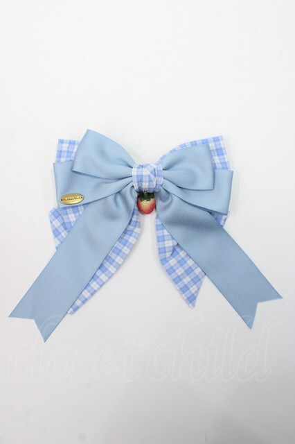 Hoshibako Works / ストロベリー・リボンブーケ ギンガムチェックリボンクリップ サックス Y-25-06-06-013-LO-AC-SZ-ZY