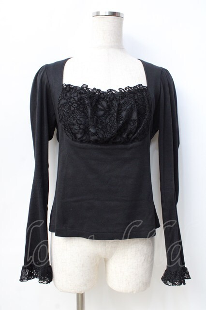 BPN / 胸元レースカットソー M 黒 Y-25-09-13-017-GO-TO-SZ-ZY