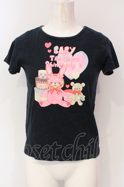 BABY,THE STARS SHINE BRIGHT / うさくみゃプリントTシャツ クロ O-25-06-07-031-BA-TO-OW-OS