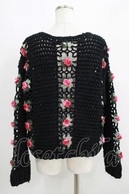 merry jenny / ノーカラークロシェカーディガン ブラック H-25-06-19-055-LO-TO-KB-ZH