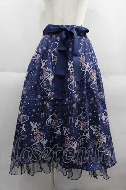 axes femme / アイスローズ柄スカート 紺 I-25-06-08-113-AX-SK-HD-ZI