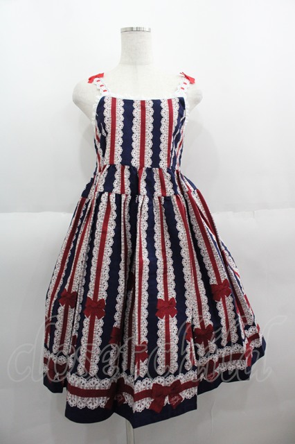 Shirley Temple / リボンプリントジャンパースカート 160CM ネイビーX赤 I-25-06-08-094-ET-OP-HD-ZI