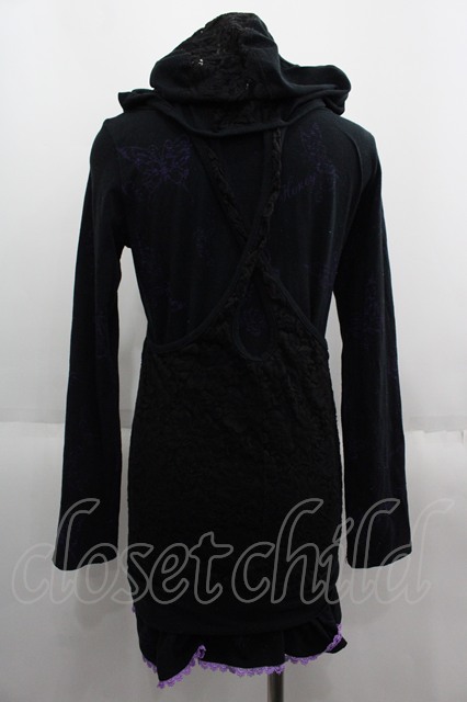 HONEY / レースフード重ねカットワンピース 黒X紫 I-25-06-08-110-HN-OP-HD-ZI