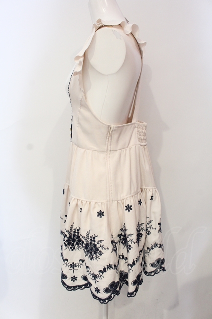 LIZ LISA / 刺繍スカラップサスペンダースカート アイボリー×ネイビー O-25-06-10-055-LO-SK-IG-ZY