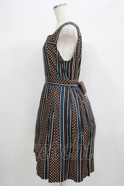 Jane Marple / ドットストライプのスクエアドレス ネイビー×ブラウン H-25-06-25-051-JM-OP-KB-ZH