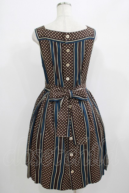 Jane Marple / ドットストライプのスクエアドレス ネイビー×ブラウン H-25-06-25-051-JM-OP-KB-ZH [戻る]