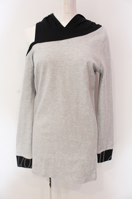 NieR Clothing / ONE-SHOULDER BICOLOR LAYERED PARKA パーカー グレー×ブラック O-25-06-16-041-PU-TO-IG-ZT008