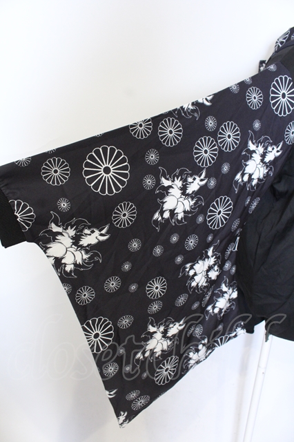 NieR Clothing / 袖リブ付き着物風袖シャツ【和柄九尾】 ブラック×ホワイト O-25-06-16-009-PU-BL-IG-ZT279