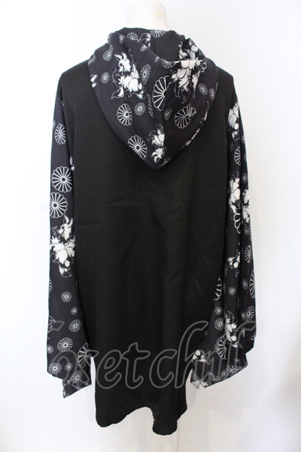 NieR Clothing / 袖リブ付き着物風袖シャツ【和柄九尾】 ブラック×ホワイト O-25-06-16-009-PU-BL-IG-ZT279 [戻る]