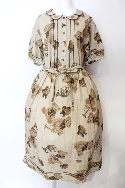 Maple Sugar / Chocolate Bear Movementワンピース2型 L ベージュ O-25-06-19-010-LO-OP-OW-OS