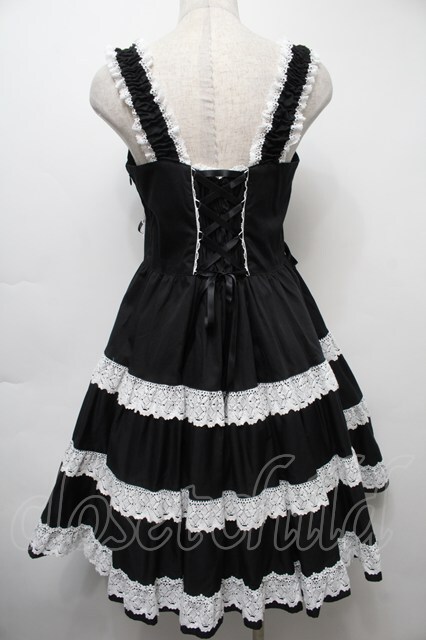 BABY,THE STARS SHINE BRIGHT / ミルフィーユジャンパースカート(2022年) 黒x白 S-25-09-17-045-BA-OP-AS-ZS