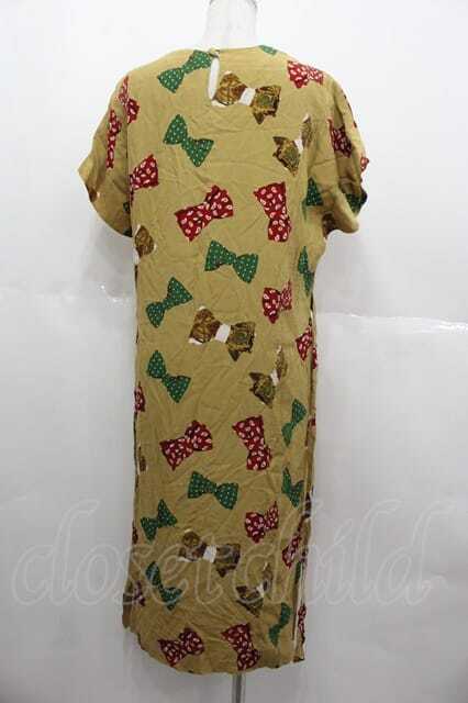 INGEBORG / リボン柄半袖ワンピース ブラウン I-25-06-21-075-LO-OP-HD-ZS